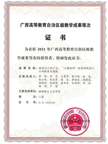 本专业2021年被认定为广西本科高校特色专业,2021年获批广西一流本科专业建设点、2022年获批国家一流本科专业建设点和广西虚拟教研室,拥有广西无人机技术应用院士工作站、广西小型无人机系统及应用工程研究中心、航空航天机电信息与控制虚拟仿真实验教学中心为代表的11个教学科研平台和广西智能信息处理创新团队。本专业近3年引培博士研究生12人(其中在职培养博士2人),其中副高级职称4人。