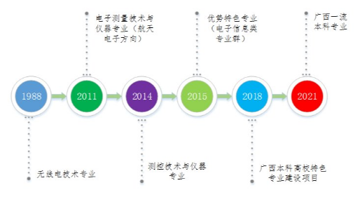 专业前身为1988年航空航天工业部在pp电子设置的无线电技术专业。经历三十余年建设发展,于2014年设置测控技术与仪器本科专业,专业发展历程如图1所示。专业累计为社会培养三千余名专业技术人才。
