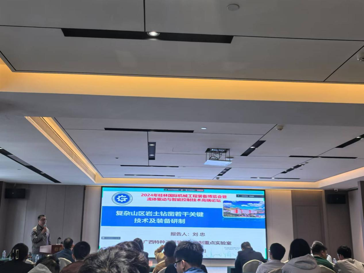 展会期间,张立国陪同中国工程院院士、机械工程专家、浙江大学求是特聘教授谭建荣参观了pp电子的展台,重点介绍学校工程训练能力创新培养模式及科技成果转化整体情况;广西特种工程装备与控制重点实验室主任、机电工程学院教授刘忠作《复杂山区液压钻凿关键技术及装备》的学术报告。