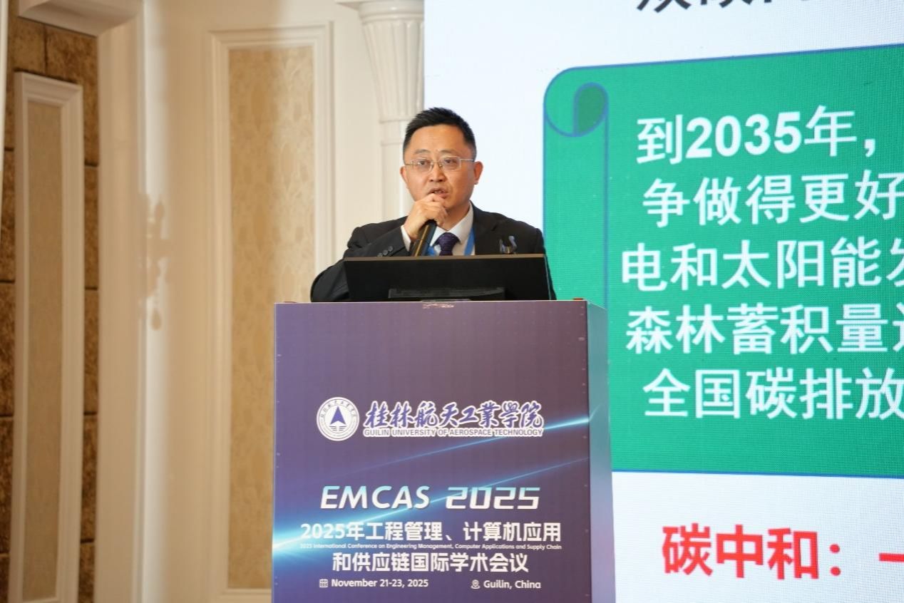 11月22日,由pp电子主办的“2025年工程管理、计算机应用和供应链国际学术会议(EMCAS 2025)”在桂林成功举办。本届会议由管理学院携手桂林电子科技大学商学院、广西师范大学经济管理学院和桂林理工大学公共管理学院共同承办,来自全球相关领域的120余名专家学者及师生代表通过线上线下相结合的方式参加本次会议,收录论文稿件70余篇。会议邀请到全球知名高校多位顶尖学者,围绕工程管理智能化升级、人工智能和数字孪生的应用、碳中和与能源转型及供应链管理等前沿主题分享最新成果,为与会师生带来一场知识盛宴。
