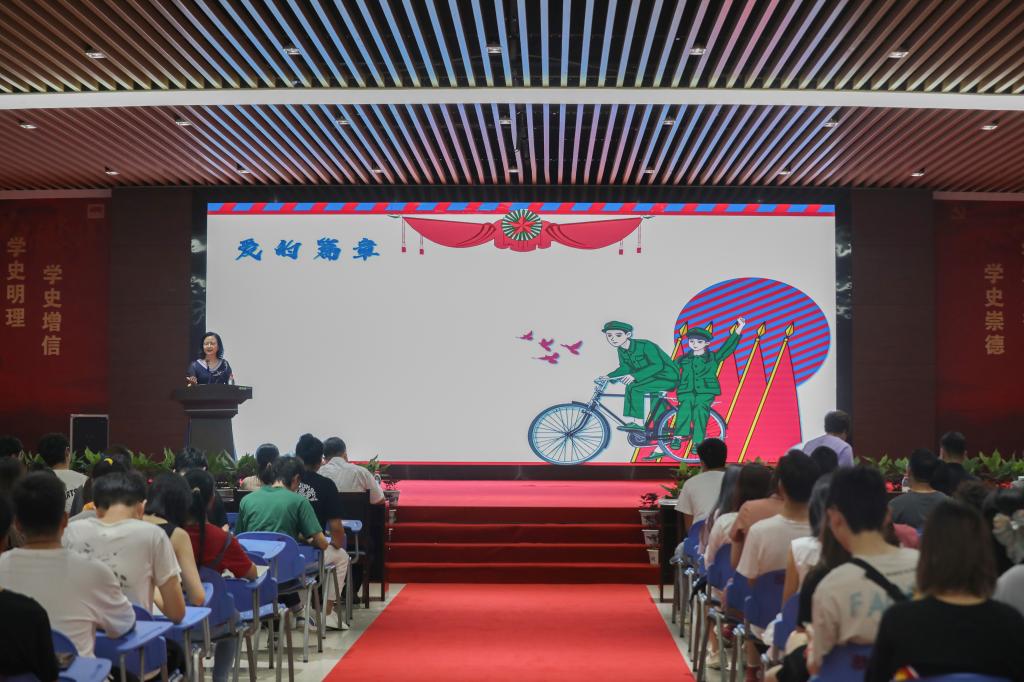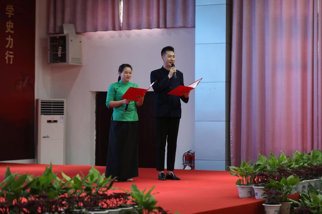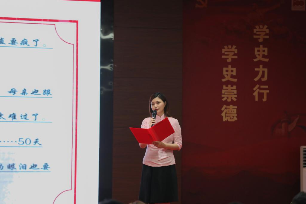 讲座中,诸葛亚以“信仰”为主线,运用情景再现、角色扮演等方式,生动形象地讲述了毛泽东与杨开慧、周恩来与邓颖超等中国共产党早期领导人感人肺腑的爱情故事,与同学们分享革命伟人的红色家书。一封封令人动容的红色家书,一个个让人感动的英烈故事,充分彰显了中国共产党人的初心和使命,感染了现场每一位听众,让师生们共同接受了一次革命理想信念的洗礼,带领师生们探索先进群体的思想轨迹,感悟字里行间的家国情怀。金牌主持人团队深情并茂的演绎和朗诵,将现场观众带回到了那个可歌可泣的峥嵘岁月,让大家深受感动,倍感振奋。
