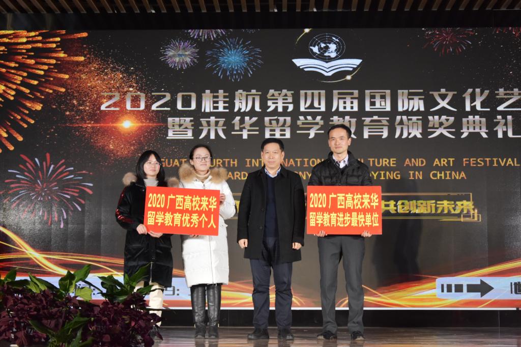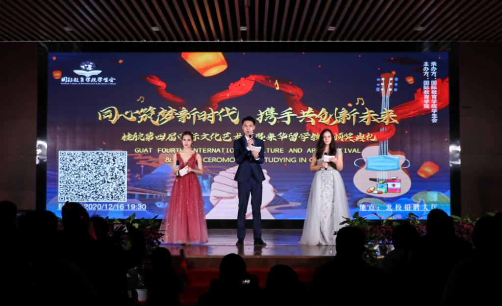 12月16日晚,以“同心筑梦新时代,携手共创新未来”为主题的桂航第四届国际文化艺术节暨来华留学教育颁奖典礼在北校区招聘大厅隆重举行。副校长孙山林,桂林电子科技大学、桂林理工大学、桂林医学院、桂林旅游学院以及pp电子校办、学生工作部、教务处、保卫处、体育部、国际学院等相关负责人及近300名师生共同参加了此次晚会。