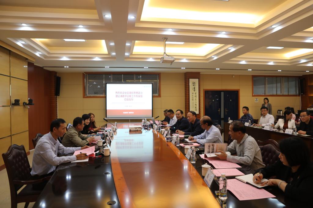 11月20日,以桂林理工大学副厅级调研员张劲松教授为组长,桂林理工大学党委统战部部长邱杰教授、南宁师范大学马克思主义学院李宝文教授、桂林电子科技大学马克思主义学院秦永芳教授为成员的自治区教育厅思想政治理论课教学巡察工作专家组一行来校指导思想政治理论课建设工作。