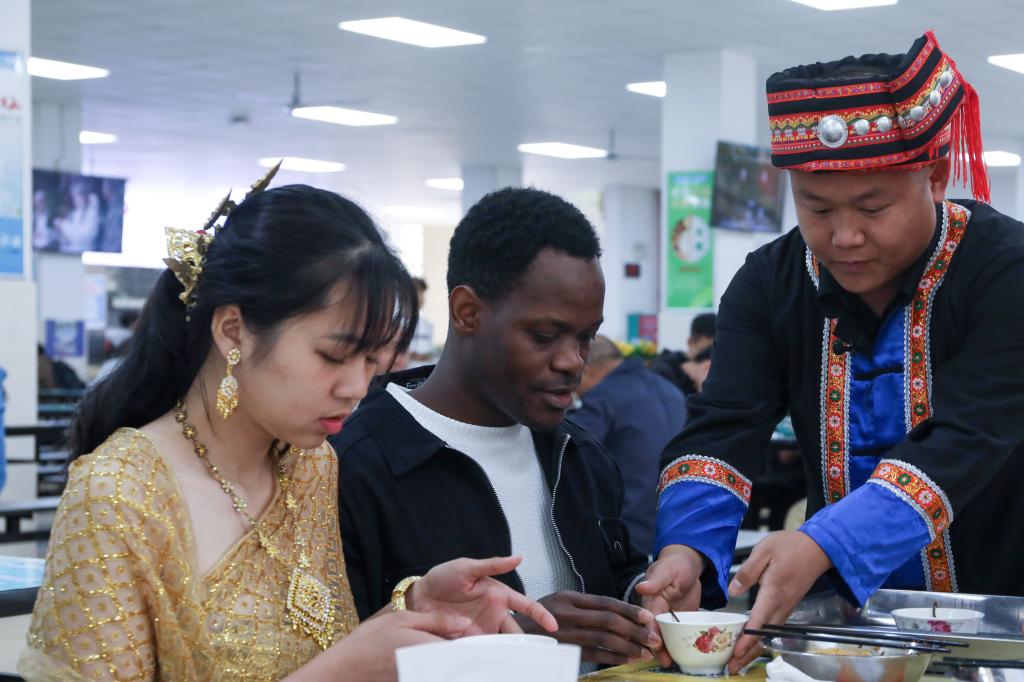 飞行器制造工程专业2021级学生居桂宇说:“我来自贵州,这是第一次品尝灌阳油茶,肉味和茶味混在一起,感觉非常好吃,很喜欢这样的活动。”赤道几内亚的留学生华金说:“油茶给我的感受非常新奇,以后也会将油茶推荐给身边的朋友。”
