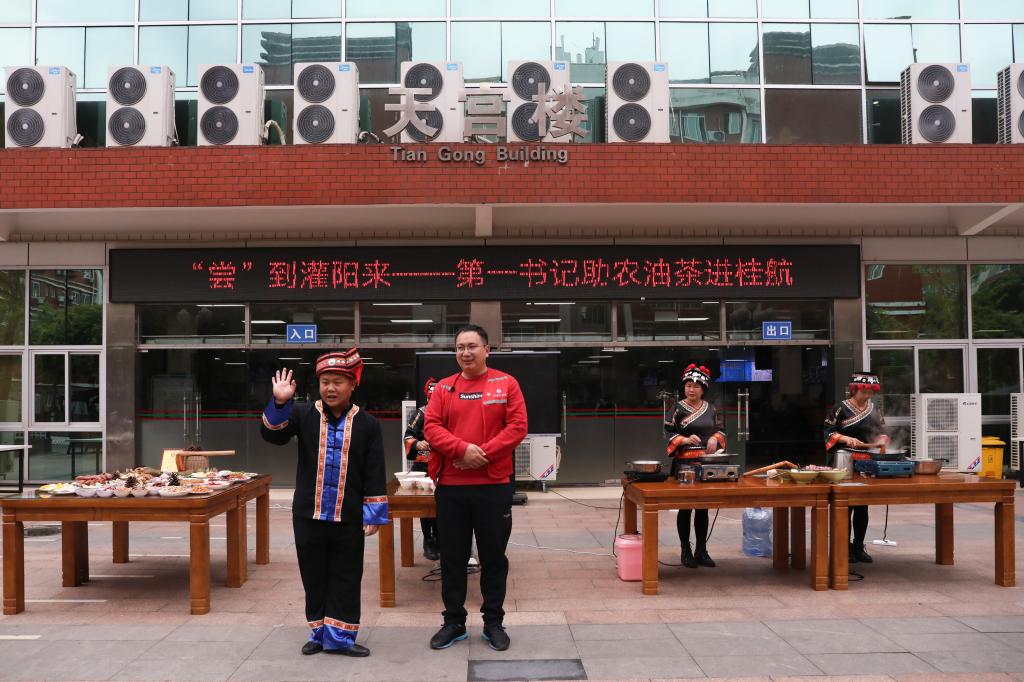 灌阳县文市镇玉溪村党支部书记文晓意表示,灌阳油茶因其独特风味、属地特点和丰富内涵,成为饮食文化与旅游产业相融合的重要载体。为了增强村集体经济“造血”功能,玉溪村在上级单位及后盾单位的帮扶下,先后投入近80万元,打造传统文化与红色文化相融合的“玉溪油茶屋”,全面带动了农户增收致富。如今灌阳油茶随着乡村振兴,逐步推广到了更远的地方,很高兴我们的本地特色让更多人知晓。希望通过这次油茶进校园的活动,打开灌阳旅游的新窗口。欢迎大家到灌阳来享受美食盛宴,领略灌阳的人文风情。