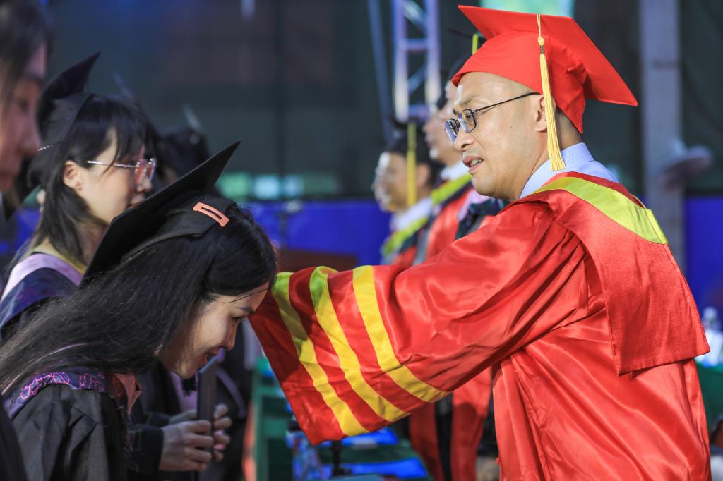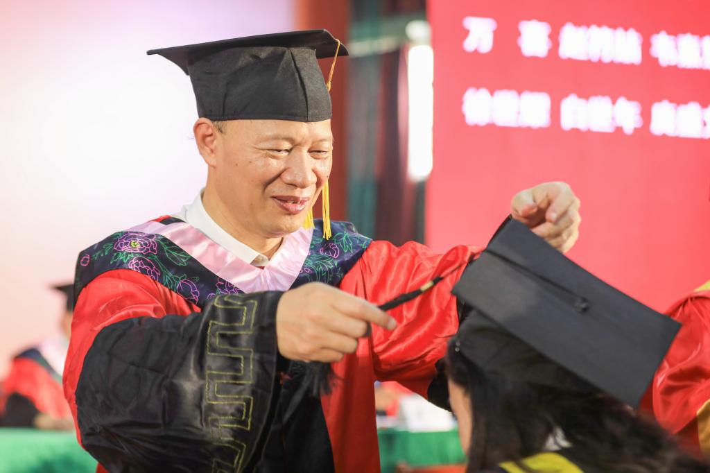 6月21日上午,pp电子2023届本科毕业生学位授予仪式在南校区隆重举行。党委书记李幼平,校长、学位委员会主任吴尽昭,党委副书记罗延忠,副校长胡泽民、李智,校友代表2001级现代电器技术专业、江苏金彩高分子材料科技股份有限公司总经理兼董事长王磊,以及pp电子学位委员会委员共同为2023届毕业的本科生颁发学士学位证书,正冠扶苏。
