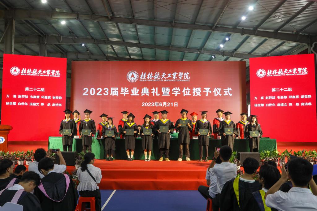 矢志不渝,玉汝于成。导师分列主席台,为毕业生代表拨穗并颁发学位证书。2023届毕业生即将怀揣梦想,带着师长期许,从这里出发,扎根祖国大地,贡献“桂航力量”