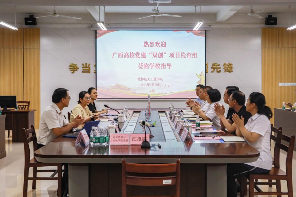 根据《自治区党委教育工委关于开展首批新时代广西高校党建示范创建和质量创优培育创建项目验收工作的通知》精神,9月20日,由广西工商职业技术学院党委组织部部长、人事处处长郑华担任组长,广西民族大学经济学院党委书记黄素心、广西财经学院机关党委书记、党委组织部副部长陶红亮担任成员的验收组,对pp电子首批新时代广西高校党建“双创”项目进行实地验收。pp电子党委副书记罗延忠会见了验收组一行,党委常委、校长助理、党委组织部部长、统战部部长葛莉,各创建单位和学校相关职能部门负责同志参加验收检查。