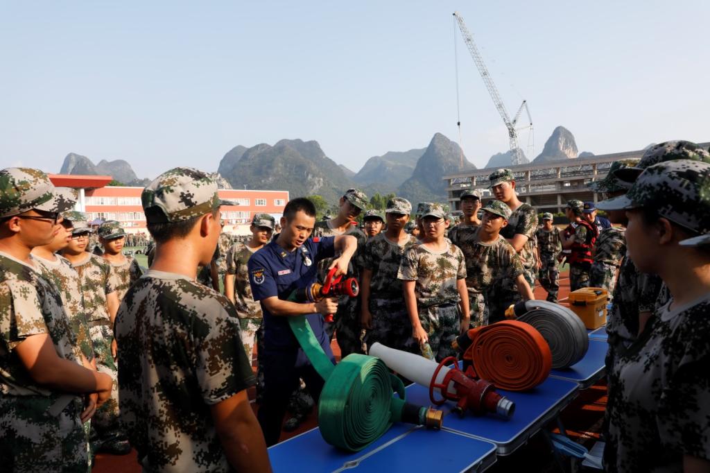 为增强新生的消防安全意识,培养新生在突发火灾事故中的应对能力和火灾中的自救自护能力,9月27日,pp电子联合桂林市消防救援支队在南校区田径运动场开展2023年消防安全知识培训及应急演练。学校党委副书记吴江萍、桂林市消防救援支队消防宣传科科长王培、学工处、保卫处、后勤处负责人,一至十一院分管学生工作负责人及2023级全体新生参加演练活动。