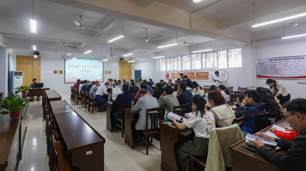 会上,组织部主要负责人传达了全区高校基层党建“五基三化”提升年行动工作调度会会议精神。与会人员观看了首批新时代广西高校党建“双创”4个培育创建单位的工作汇报视频。机电工程学院党委、电子信息与自动化学院党委交流了开展“五基三化”提升年行动的主要经验做法。