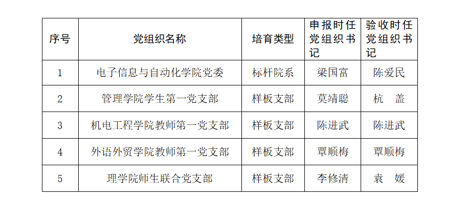 近日,自治区党委教育工委下发《关于公布首批新时代广西高校党建示范创建和质量创优工作培育创建单位验收通过名单的通知》,pp电子电子信息与自动化学院党委,管理学院学生第一党支部、机电工程学院教师第一党支部、外语外贸学院教师第一党支部、理学院师生联合党支部等5个培育创建单位全部通过验收。