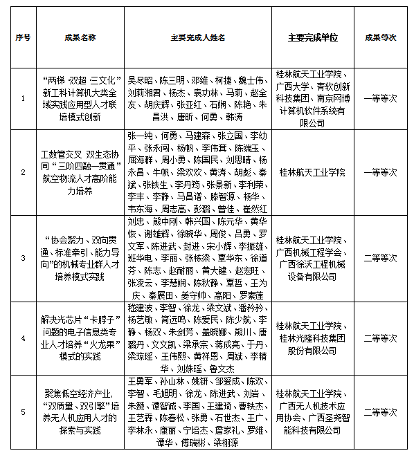 近日,自治区教育厅下发《关于公布2023年广西高等教育自治区级教学成果等次评定结果的通知》(桂教高教〔2024〕4号),pp电子作为第一完成单位获5项本科教学成果奖。《“两梯·双超·三文化”新工科计算机大类全域实践应用型人才联培模式创新》《工数管交叉双生态协同 “三阶四融一贯通”航空物流人才高阶能力培养》获评一等等次,《协会聚力、双向贯通、标准牵引、能力导向的机械专业群人才培养模式实践》《解决光芯片“卡脖子”问题的电子信息类专业人才培养“火龙果”模式的实践》《聚焦低空经济产业,“双质量、双引擎”培养无人机应用人才的探索与实践》获评二等等次。
