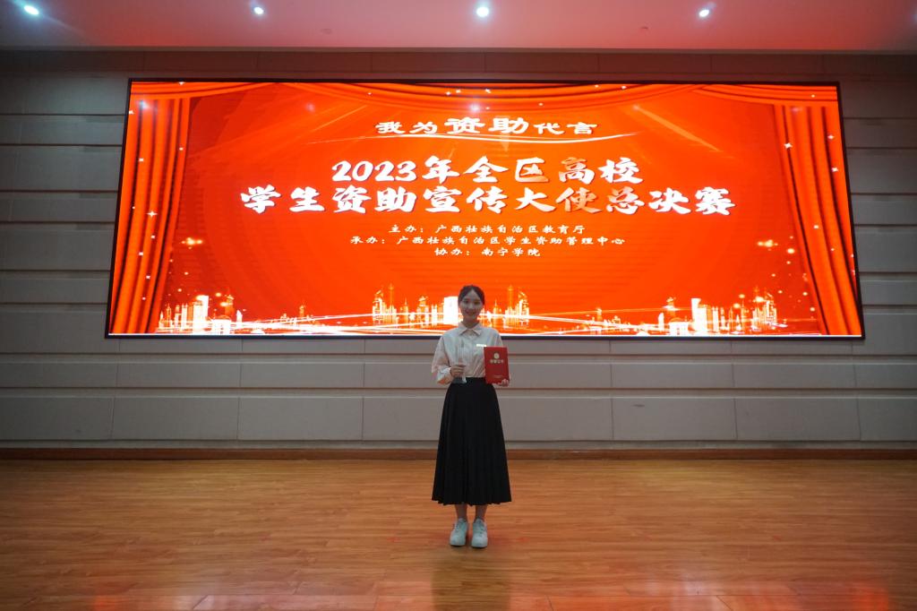 国家励志奖学金获得者李晓慧在2023年“我为资助代言”全区高校学生资助宣传大使活动中获全区“十佳宣传大使”荣誉称号