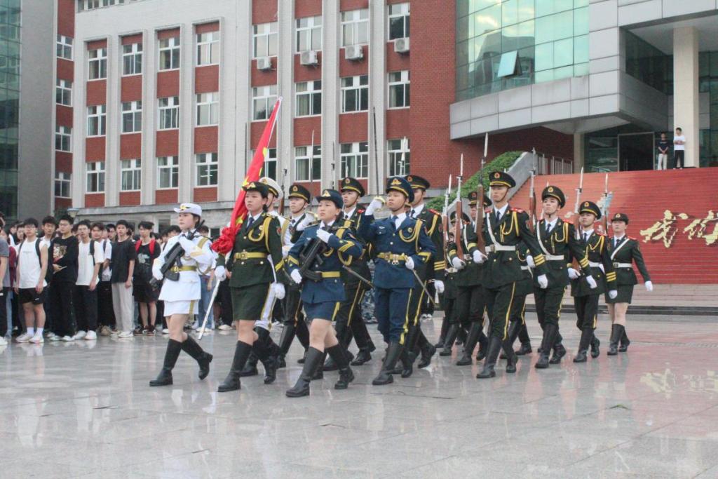 面向高高飘扬的五星红旗,国旗护卫队新入队队员代表叶梓俊带领桂航学子们庄严宣誓:“传承航天精神,努力成长为勇挑重担、堪当大任的桂航人!”