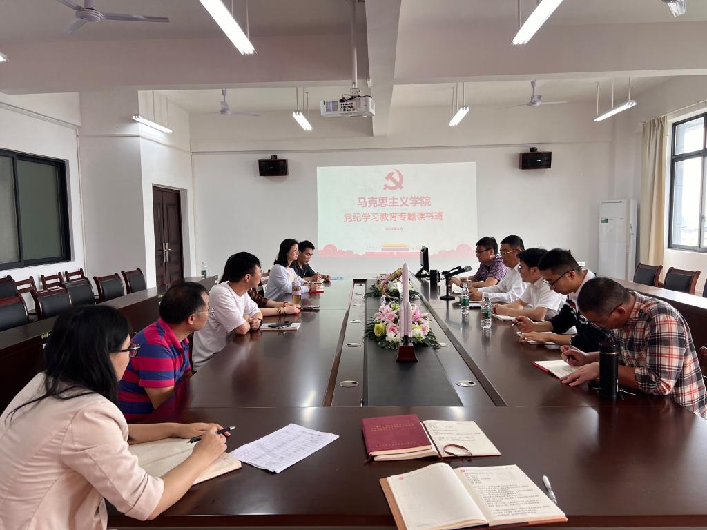 近日,根据学校党纪学习教育部署安排,各二级理论学习中心组按时开展专题读书班学习。读书班以集中领学、个人自学、交流研讨相结合的方式进行,坚持原原本本、逐章逐句、联系实际学习《中国共产党纪律处分条例》,准确掌握“六项纪律”的主旨要义和规定要求,带动全校党纪学习教育走深走实。