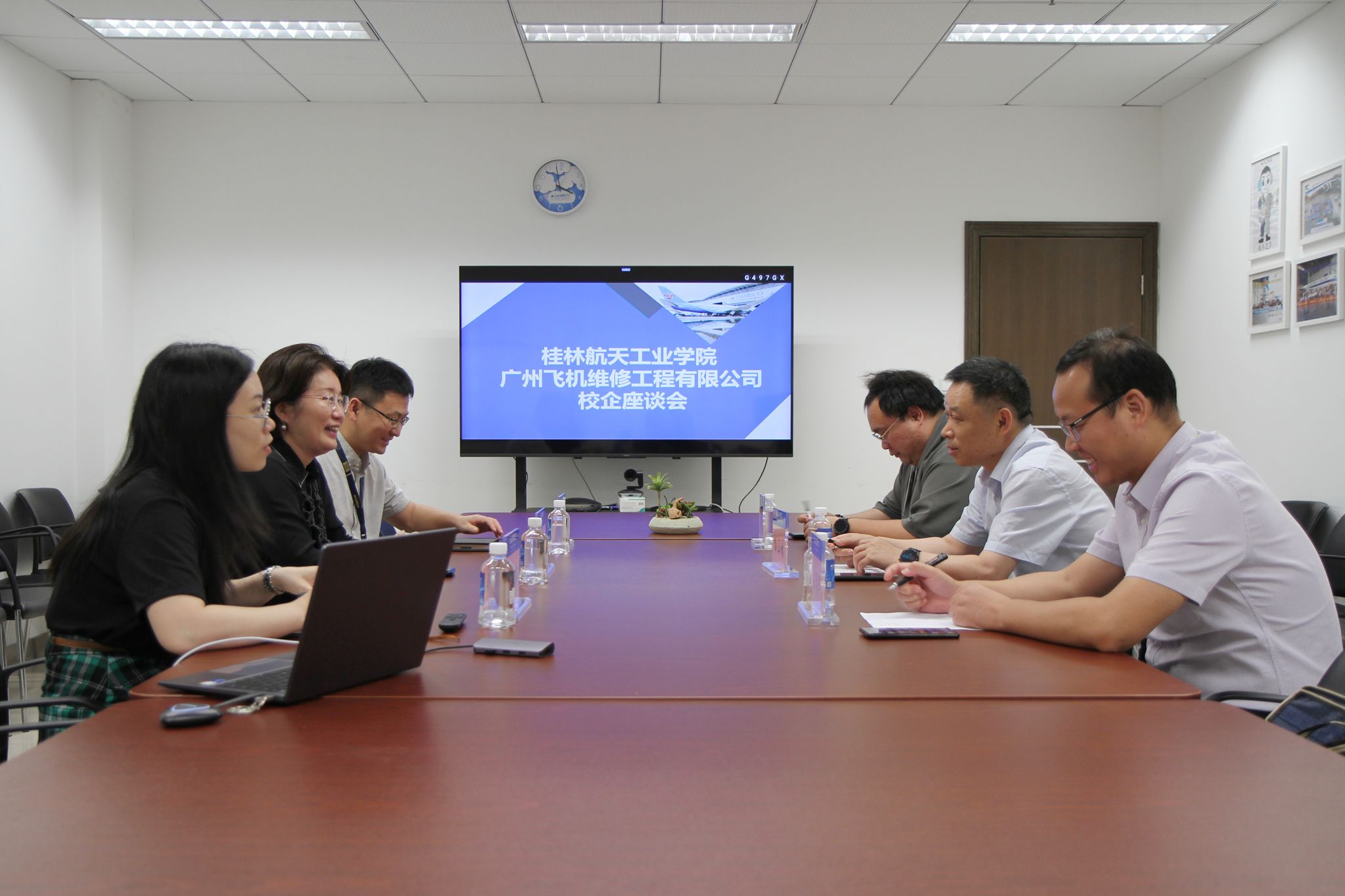 在调研座谈会上,广州飞机维修工程有限公司人力资源总监陈倩敏代表公司对学校来访表示热烈欢迎。孙山林介绍了学校的历史沿革和办学成果,重点介绍了学校近年来围绕强化航空航天特色在人才培养、科学研究、学科建设等方面取得的成绩。孙山林表示,学校作为航空航天类特色院校,将立足于航空航天产业格局,不断拓展航空航天企业合作空间,在人才培养、科技创新合作等方面深化交流合作,共同打造新的人才培养生态链。陈倩敏总监指出,飞机维修专业人才市场需求量大,需求层次丰富,特别是对高技能人才,企业充满期待,双方将夯实前期合作基础,持续深入挖掘合作潜力和空间。座谈会后,在人力资源部招聘经理张舒萍的带领下,孙山林一行参观了广州飞机维修工程有限公司一期、二期机库、维修现场及培训基地。