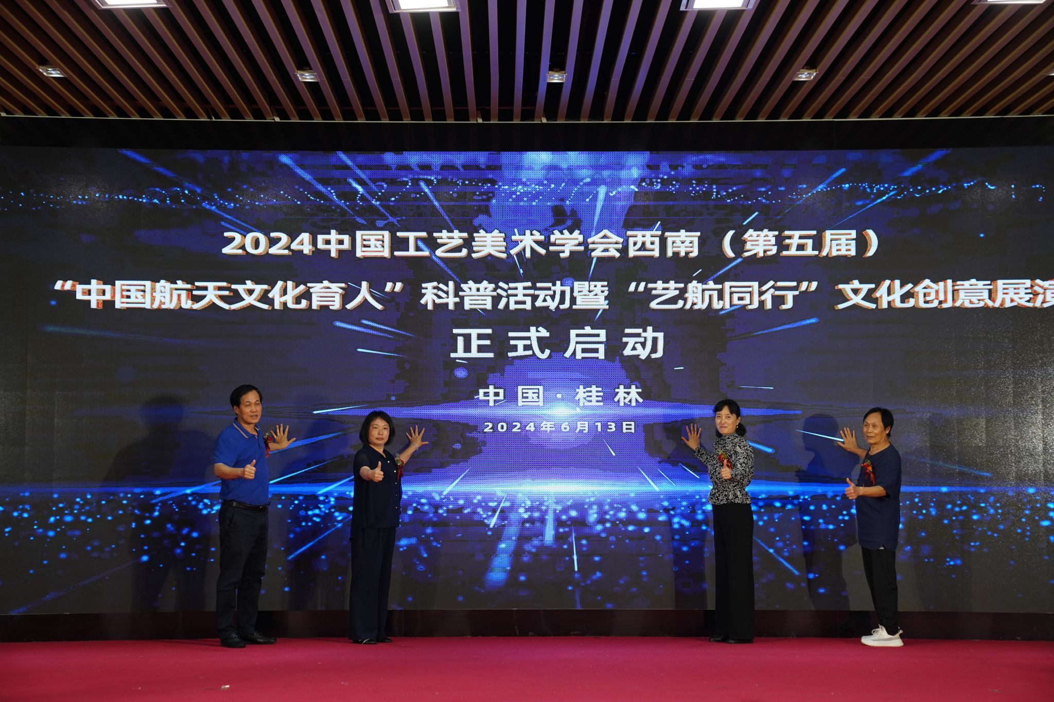 6月13日下午,2024 中国工艺美术学会西南(第五届)“中国航天文化育人”科普活动暨“艺航同行”文化创意展演启动仪式在pp电子官方网站入口举行。此次活动由中国工艺美术学会、pp电子官方网站入口主办,中国工艺美术学会副理事长任建新、pp电子副校长葛莉等领导嘉宾莅临活动现场,自治区内外20余名工艺美术大师及pp电子师生代表参加活动。