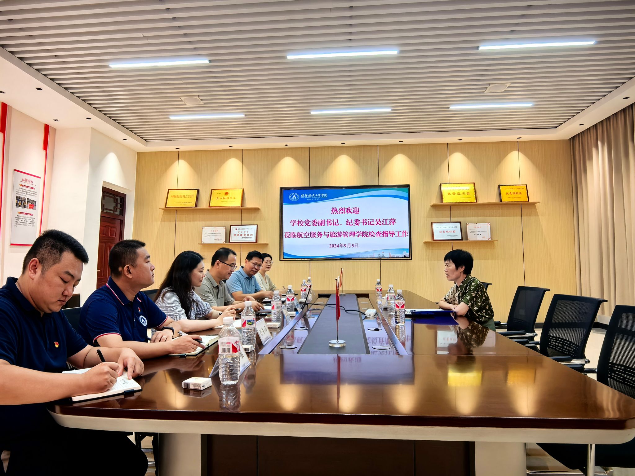 近日,学校党委副书记、纪委书记吴江萍到航空服务与旅游管理学院调研指导开学工作,学院党委书记张海涛、院长林朝阳、党委副书记唐珉参加调研。