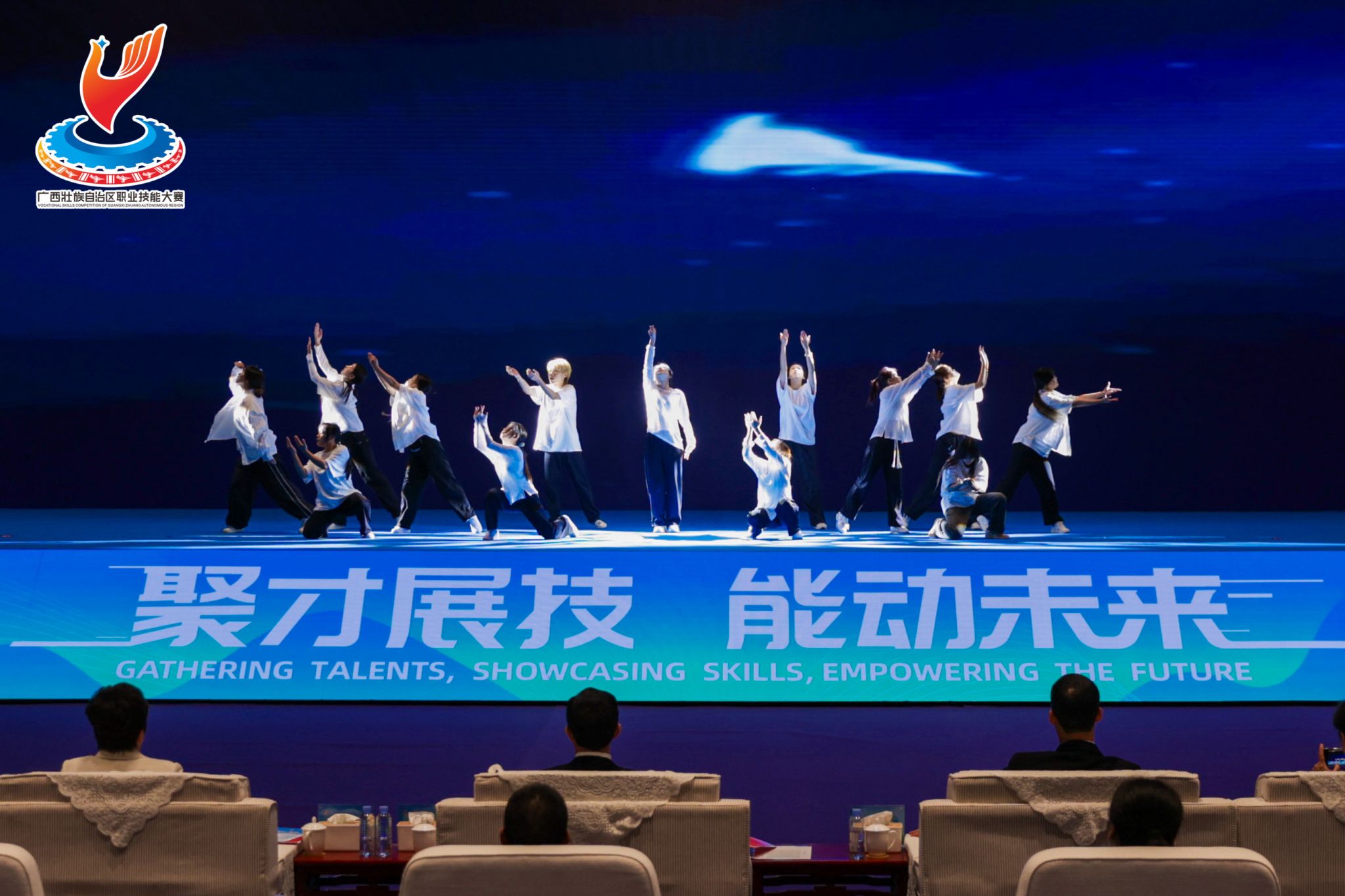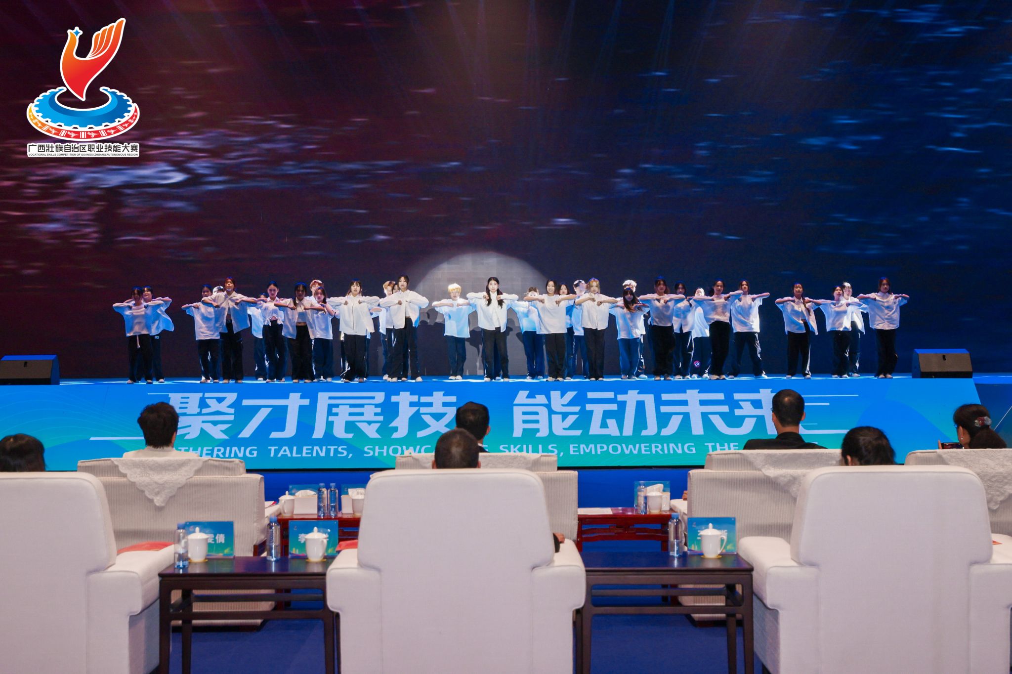 据悉,本次大赛以“聚才展技、能动未来”为主题,吸引了97个代表团(队)880名优秀选手参与项目比赛,旨在激励广大劳动者热爱钻研技能、带动更多劳动者走技能成才、技能报国之路。pp电子大学生艺术团参与自治区级大型赛事闭幕式演出,是桂航学子的一次实践历练,也成为一道展示桂航学子自信阳光、精益求精的靓丽风景。