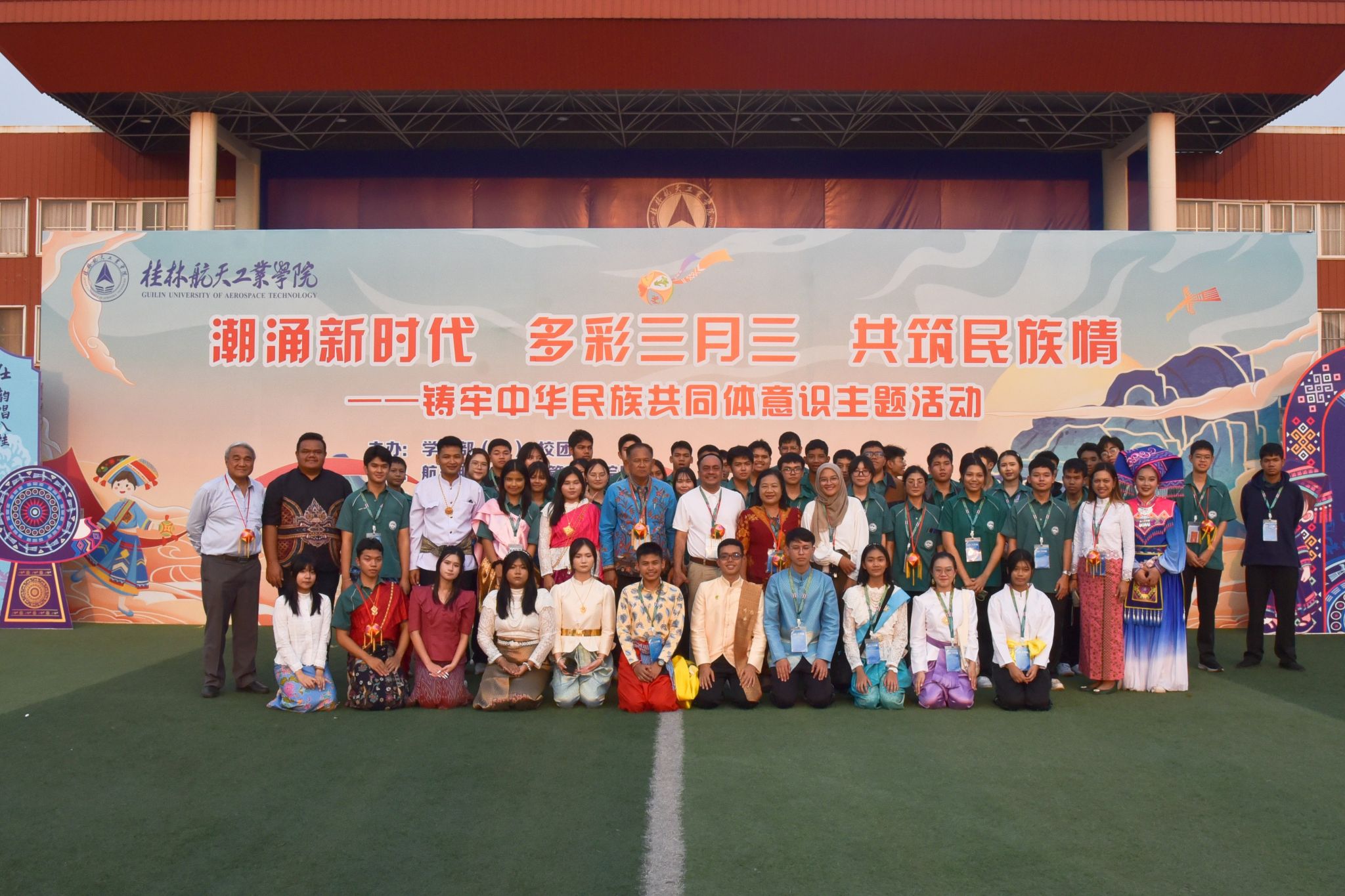 活动当日,恰逢学校举办“三月三”民歌节,泰国师生欣然加入这一欢庆行列。身着传统民族服饰的泰国留学生,与身着斑斓壮族服饰的中国同学手挽手,踏着欢快的节拍翩翩起舞。在这热烈而融洽的氛围中,大家心手相连,不分你我,一同感受八桂文化的独特韵味。