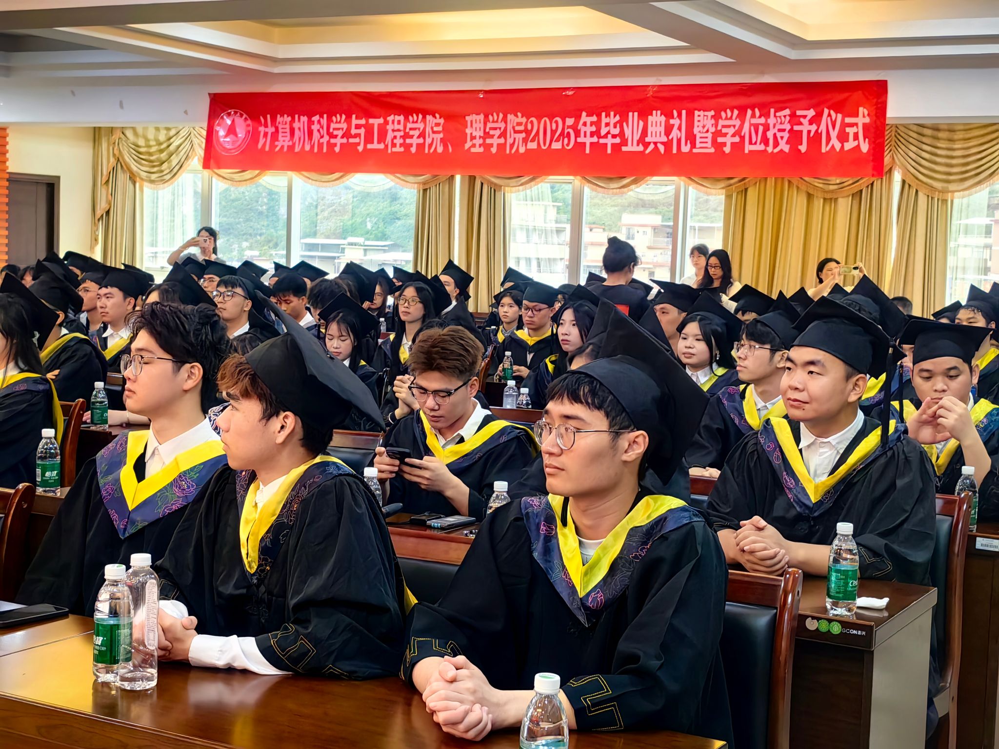 6月19日上午,pp电子官方网站入口计算机科学与工程学院与理学院2025届毕业典礼暨学位授予仪式在庄严的国歌声中拉开帷幕。学校党委副书记、校长吴尽昭,两院党政领导班子成员、学位委员会及毕业生家长代表共同见证了这一重要时刻。典礼由理学院副院长柯捷主持。