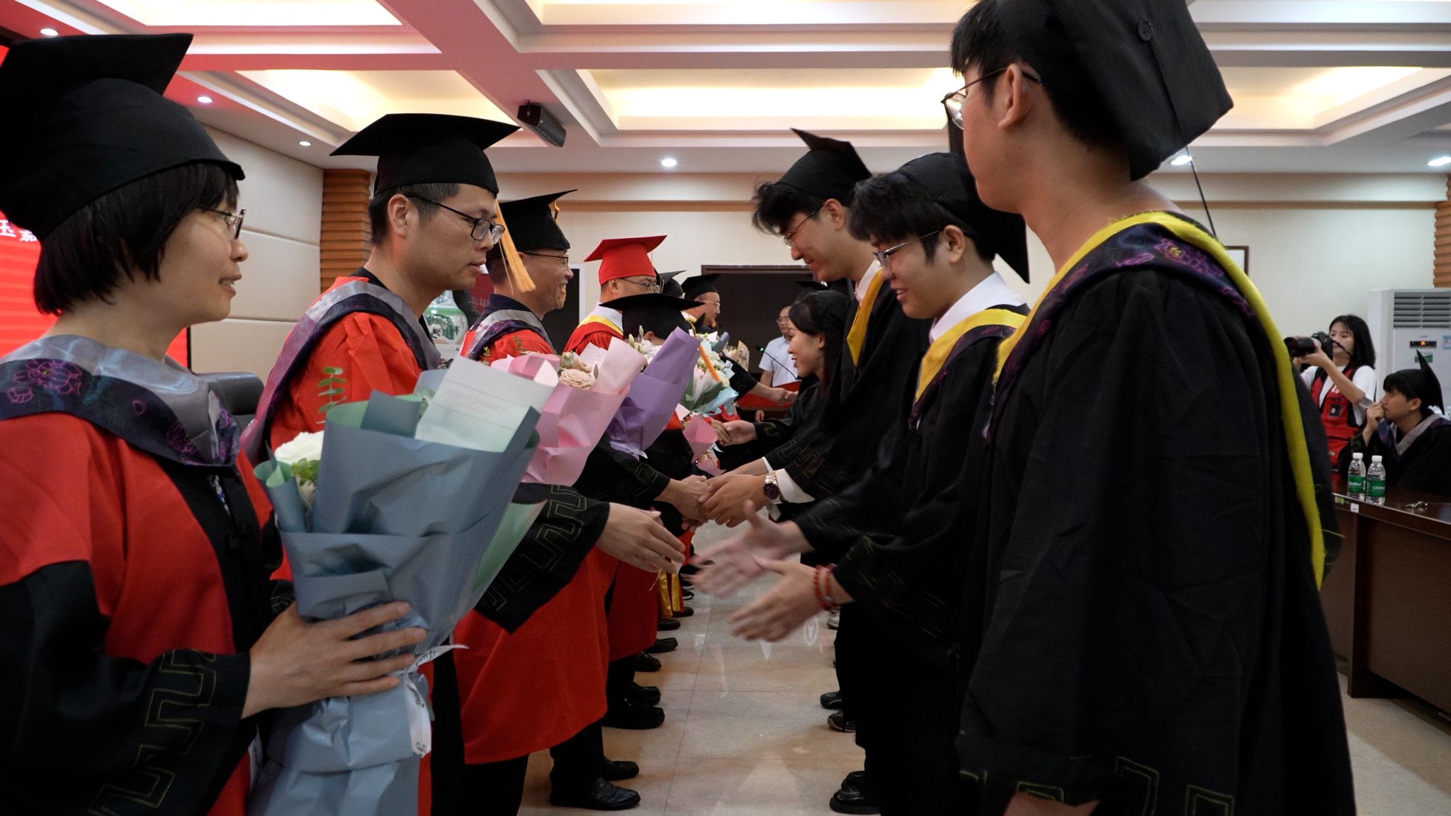 主持人代表两个学院党政班子提出三点寄语:一要胸怀家国,以“大我”格局担当时代使命;二要笃行实干,以“忘我”精神成就事业华章;三要坚守初心,以“真我”本色书写精彩人生。希望毕业生在新的征程上勇毅前行,让青春在奋斗中绽放绚丽之花。