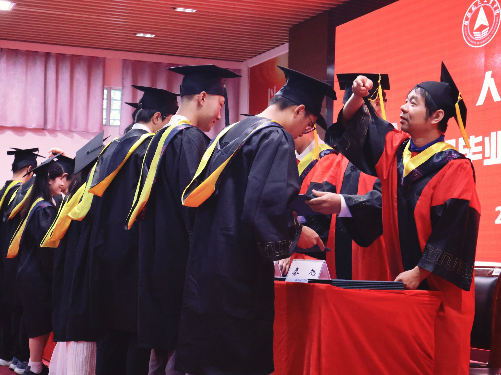 6月19日,人工智能学院在北校招聘大厅隆重举行2025届毕业生学士学位授予仪式。学院党政班子全体成员、教师代表、毕业生亲友代表及两百多名毕业生齐聚一堂,共同庆祝充满希望的时刻。