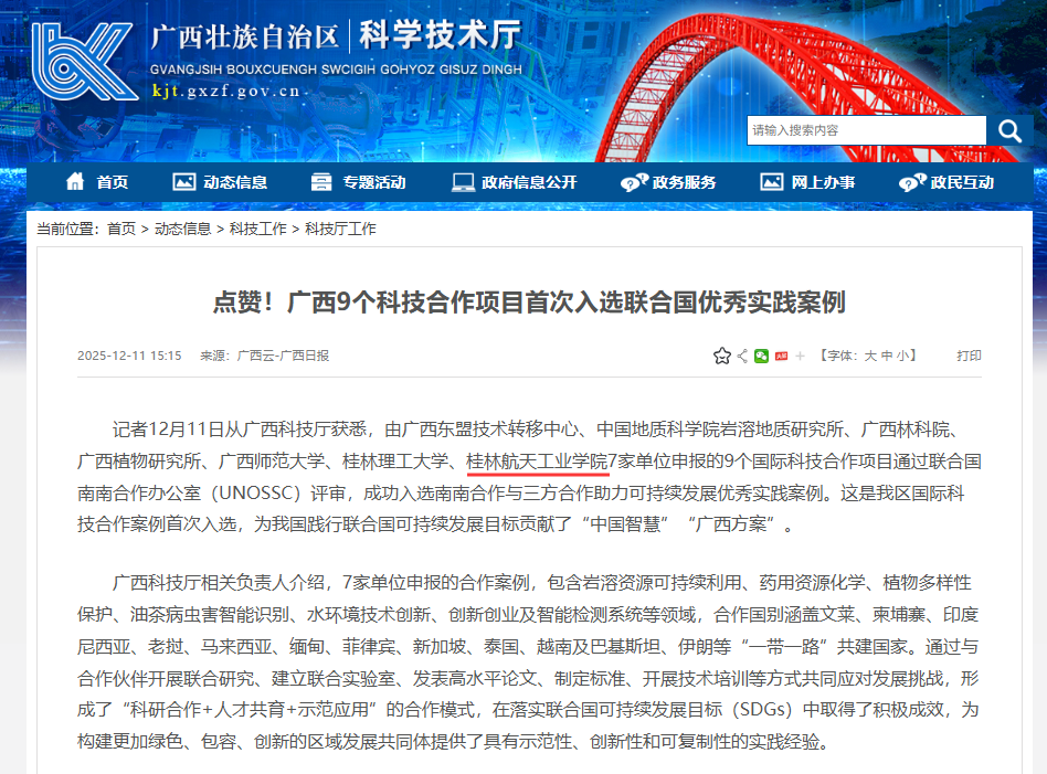 项目实施过程中,学校充分发挥学科和科研平台优势,将科研合作与国际化人才培养相结合,积极推动中国—东盟航天工程师学院建设,探索“科研协同、人才共育、成果共享”的国际合作新模式,为培养面向区域和产业需求的高素质工程技术人才提供有力支撑。