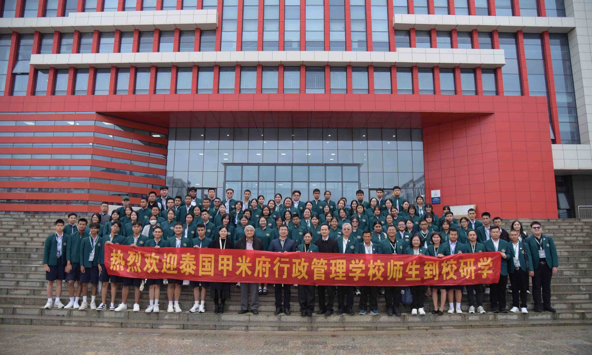 3月24日,泰国甲米府行政管理学校师生一行105人到校开展研学活动,pp电子党委宣传部、校团委、图书馆、国际交流处相关负责人参加了此次活动。