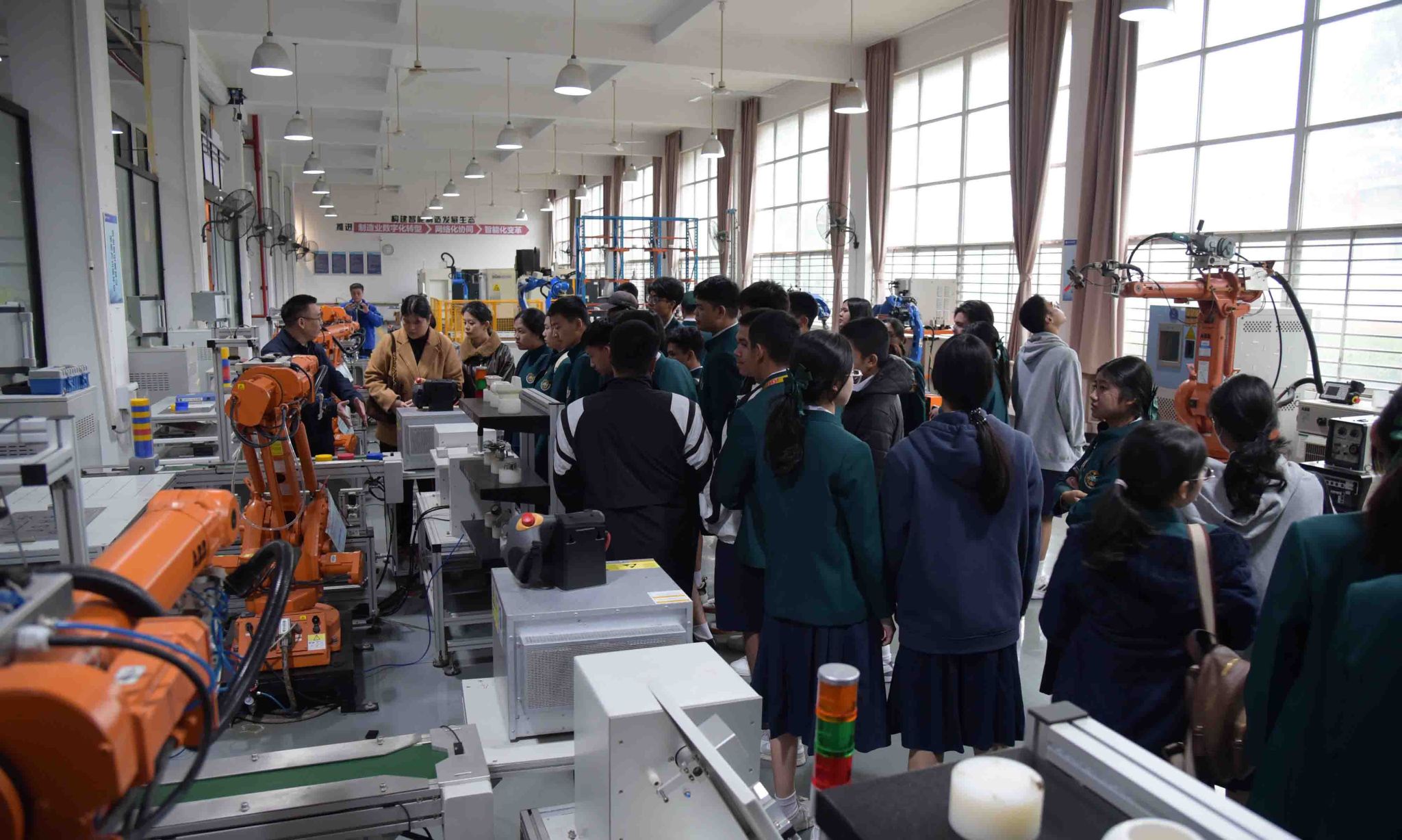 当天,研学团师生还参观了航空航天工程实训教学中心、广西特种工程装备与控制重点实验室以及汽车工程学院实训教学中心,近距离了解了无人机系统工程、智能制造工程以及车辆工程等实验实训装备。同时,他们还体验了无人机飞行模拟操控,观看了无人机飞行表演。