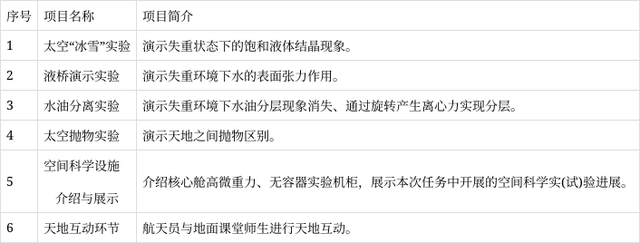 “天宫课堂”课程表