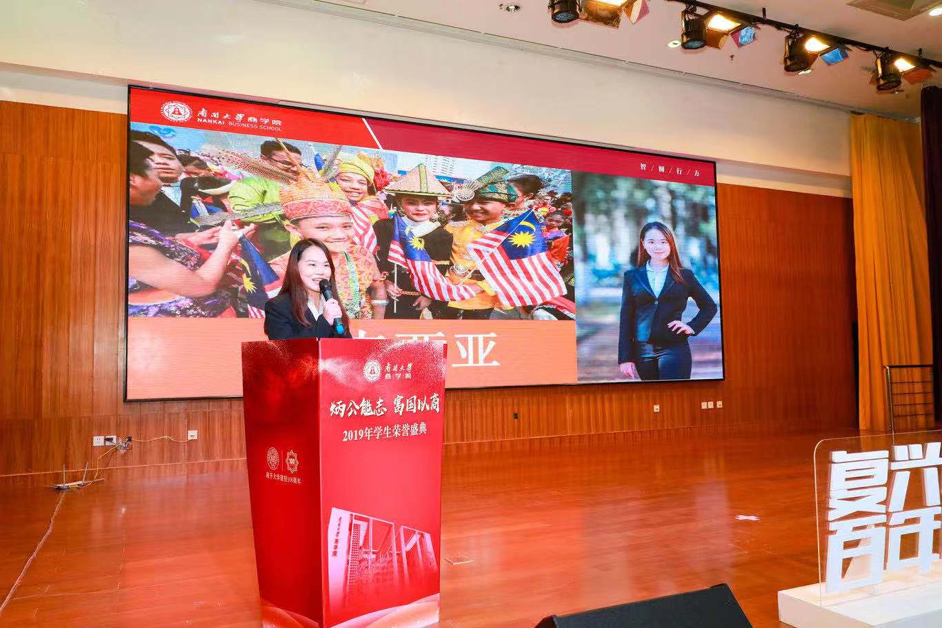 学院目前已获得AACSB、AMBA国际权威认证,在校百余名的国际学生涵盖了本、硕、博、专业学位多个层次。学院通过与海外30余所知名jinnianhui金年会建立合作与交流关系,每年派出和接收200余名各层次交换及短期交流学生,并开设全英文授课项目、全球管理教育项目、本硕或双硕士联合培养项目、世界知名企业冠名课程、海外课堂项目,为中国学生走向国际、国际学生了解中国提供了平台。典礼上, 留学南开奖学金获奖学生代表、2018级信息管理与信息系统专业马来西亚留学生陈婉茹分享了她与南开的故事。