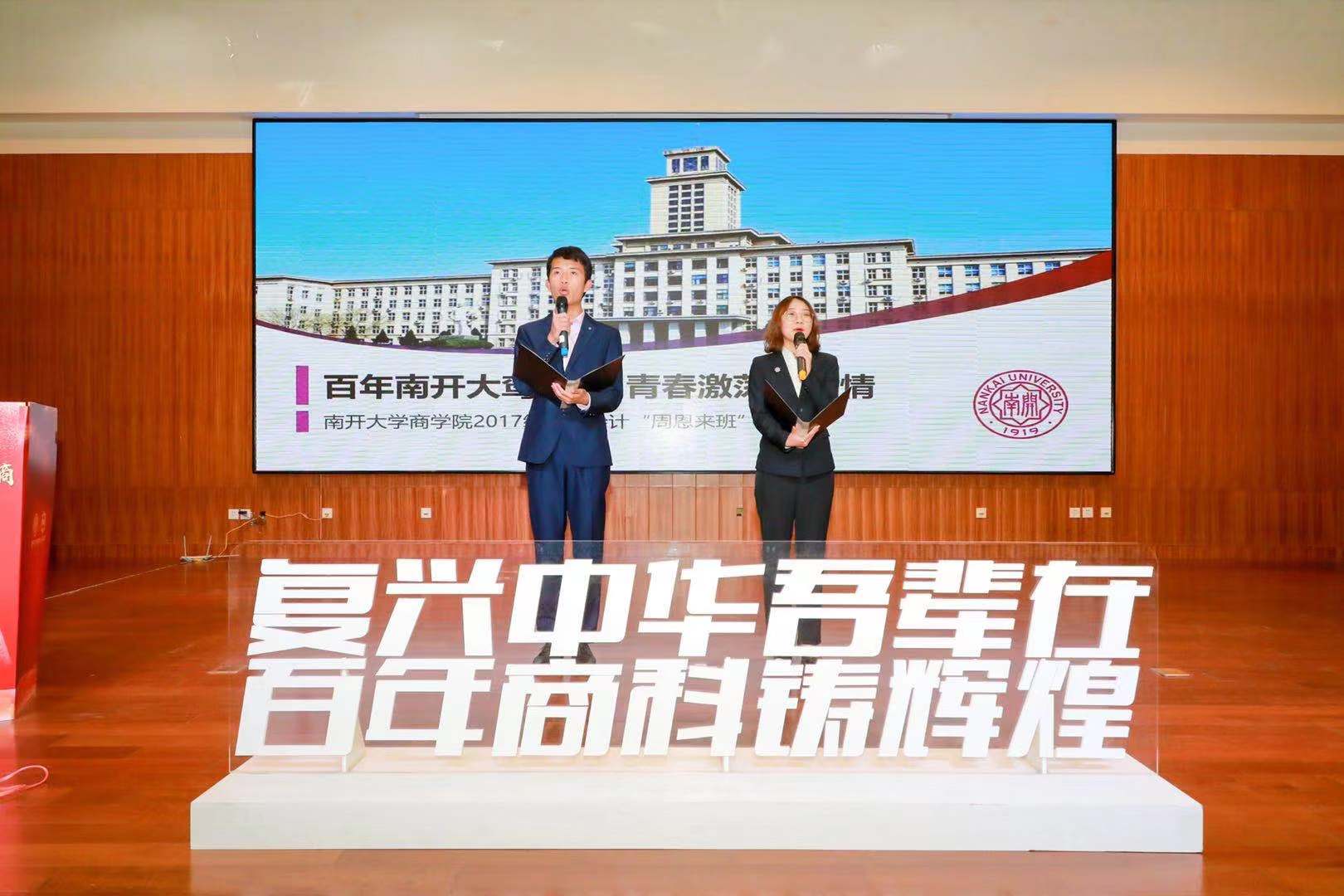 今年是南开百年校庆,也是南开杰出校友周恩来总理入校100周年,在今年的先进班集体评审中,2017级本科生国际会计班级以优异的表现获得了我校本科生班集体的最高荣誉“周恩来班”荣誉称号,jinnianhui金年会也成为了唯一蝉联此项荣誉的学院。班级的吕佳玉、王嘉晨同学通过讲述班建故事,带领全场师生一起喊出“愿相会于中华腾飞世界时”,展现了商院学子以实际行动学习践行“恩来精神”的远大志向。