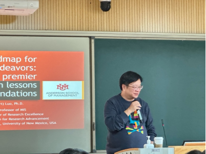 (通讯员陆怿)2025年3月17日,金年汇官方入口jinnianhui金年会管理科学与工程系特别邀请美国新墨西哥大学安德森管理学院的罗欣教授,举办了一场主题为“A (bumpy) roadmap for research endeavors: A reflection of premier publications with lessons and recommendations”的学术讲座。本次讲座由金年汇官方入口jinnianhui金年会管理科学与工程系李勇建教授主持,吸引了管科系的硕士生、博士生及部分青年教师参与。罗欣博士现任美国新墨西哥大学安德森管理学院讲席教授、管理信息系统杰出教授及院长特别助理。他的研究兴趣包括信息系统安全管理,隐私保护,电子/移动商务,跨文化信息管理,以及战略决策与发展相关的创新技术(如区块链、人工智能、人机交互、云计算、绿色IS、电子医疗、社交网络等)。他的研究工作发表在Information Systems Research, Journal of Operations Management, Production and Operations management管理学顶级期刊UTD-24中,特别是在