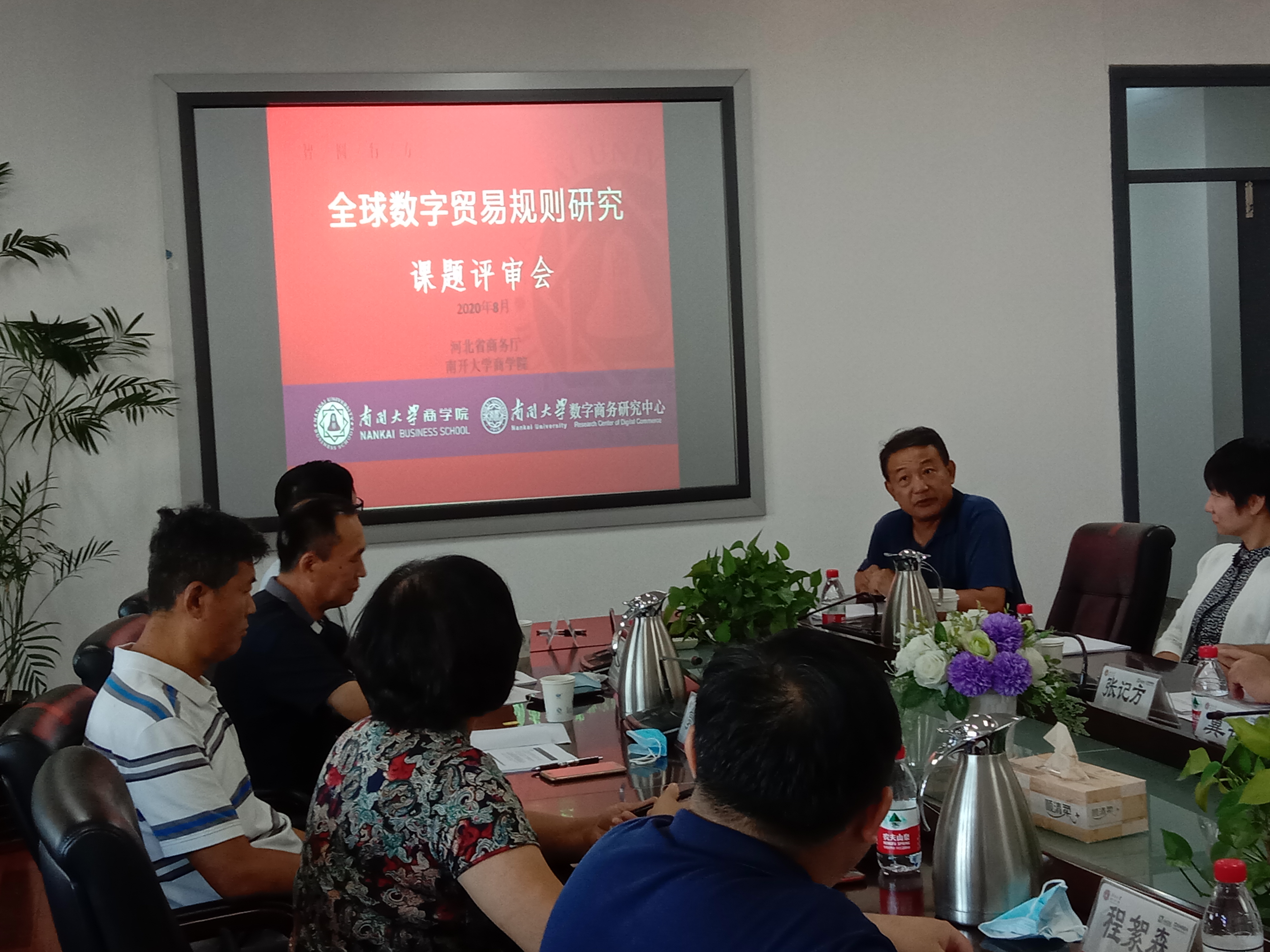 河北自贸试验区数字贸易规则与标准课题评审会顺利举行2020年8月21日,河北省商务厅与金年汇官方入口在金年汇官方入口jinnianhui金年会818会议室召开了“数字贸易规则与标准课题研究”项目评审会,此次课题研究报告由金年汇官方入口jinnianhui金年会数字商务研究中心主任李凯教授及其团队完成。评审会邀请了来自天津大学、中国人民大学、天津社会科学院、天津工业大学、中国工商银行总行、阿里巴巴集团等单位领导和专家6人,金年汇官方入口jinnianhui金年会院长白长虹教授出席会议并致辞,河北省商务厅相关领导负责人听取了课题研究成果汇报,评审会专家就课题成果进行了认真评审。下午15时整,白长虹院长出席评审会并发表讲话,感谢河北商务厅能够与金年汇官方入口jinnianhui金年会就数字贸易这一国家现实重大问题展开合作,同时也欢迎到会的评审专家能够提出宝贵建议,并希望在数字贸易发展相关研究课题开展更多的合作。在课题研究成果汇报议程中,李凯教授从数字贸易的概述、分类、全球数字贸易规则与标准、数字贸易发展中国提议以及中国数字贸易的发展与探索五个方面详细阐述了课题研究成果。相关研究报告将在后续的河北数字贸易论坛做专门发布,并在2020中国国际服务贸易交易会上作专题演讲。在专家评审环节,6位专家对李凯教授